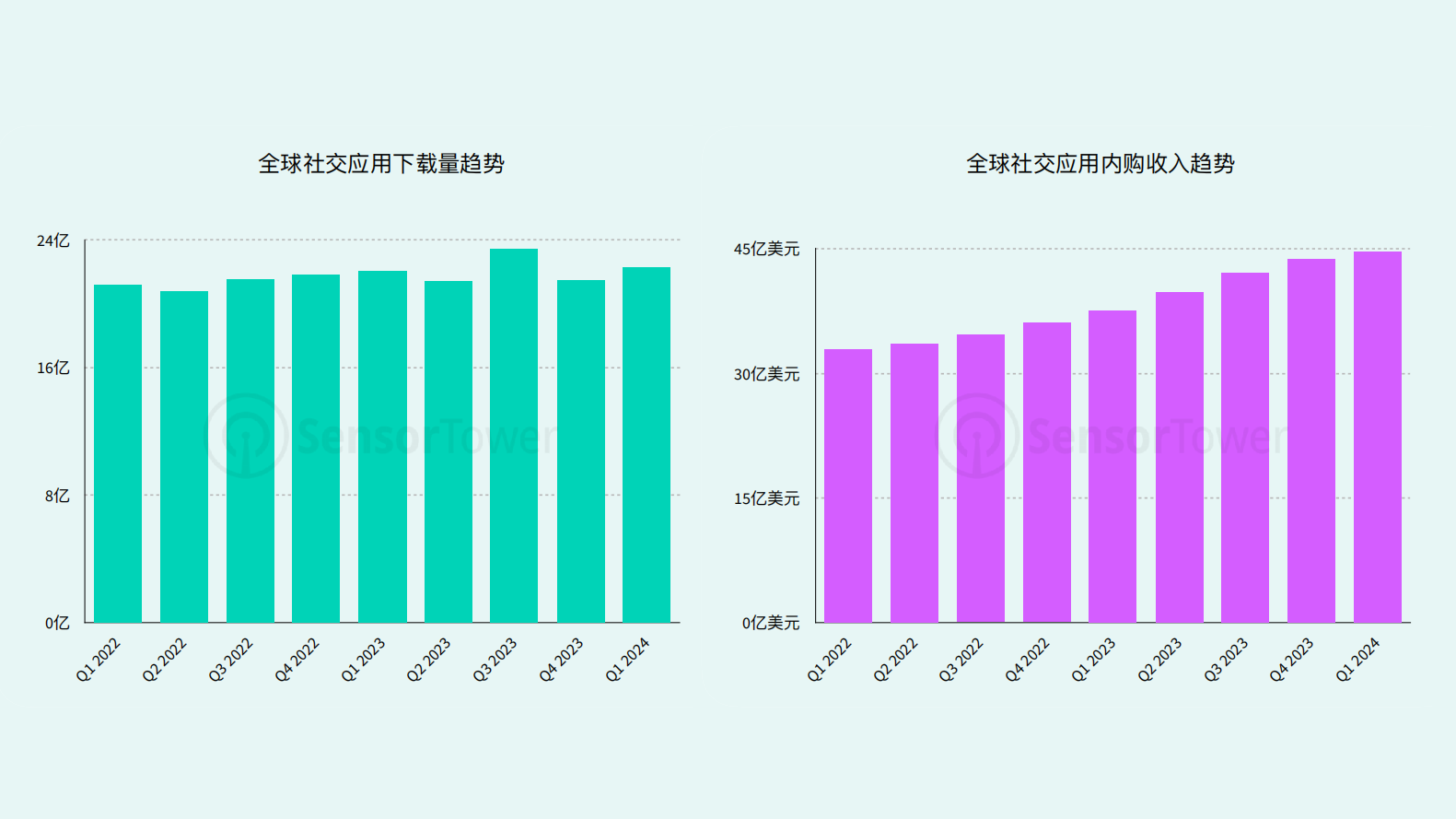 近年来,全球社交应用市场局面愈加复杂。一方面,全球社交应用内购收入稳步提升,2024 年 Q1 内购收入高达 45 亿美元,同比增长 19%,再创历史新高;另一方面,下载量增速放缓甚至波动显然与收入趋势不匹配。这一趋势反映出,随着市场饱和与用户获取成本的持续攀升,开发者在获取用户之外,更需要构建以用户长期价值为核心的变现策略。
