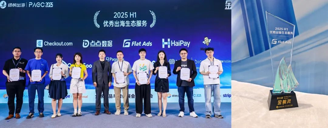 Flat Ads凭借卓越的营销实效与创新服务能力,从众多竞争者中脱颖而出,荣膺"优秀出海生态服务"奖项。